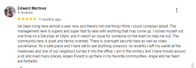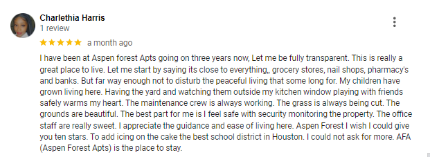 We understand that finding a new home can be stressful, and there are many factors to consider such as amenities, pricing, and location. At Aspen Forest Apartments, we may not have all the typical amenities that other apartments offer, like a pool or a gym. However, we have a dedicated team that cares about our community and every person who walks into our leasing office. Plus, we offer affordable prices and a great location. We are conveniently located near Vintage Park and Tomball!